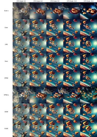 CFG Scale 与采样器之间的关系: