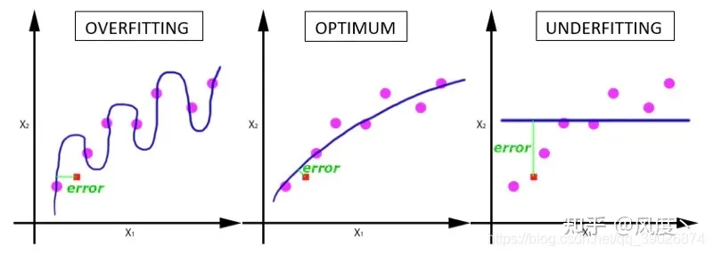 在深度学习中,程序通过不断地将数据集在神经网络中往复传递来更新网络中的权重,以此建立对目标的拟合关系,因此只有反复地迭代才能增强数据集的拟合度。随着 epoch 的增加,模型将从欠拟合(右一,表示即便是来自于数据集中的输入,模型也很难达到它应该有的结果,类似于“只做题库里的题都做不对的差生”)变为过拟合(左一,表示模型对于来自于数据集中的输入,总能精确地达到对应的对结果,但是如果输入一旦有些许偏差,比如输入一些不是训练集中的输入,那结果就会很差,类似于“只会做题库里的题的书呆子”)。
