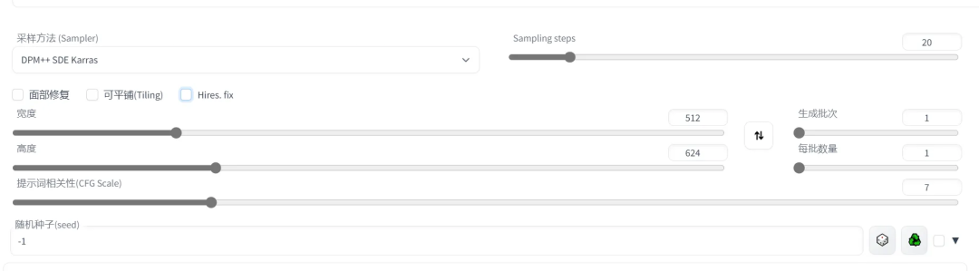 指定图像的长宽。出图尺寸太宽时,图中可能会出现多个主体。1024 之上的尺寸可能会出现不理想的结果,推荐使用小尺寸分辨率+高清修复(Hires fix)。