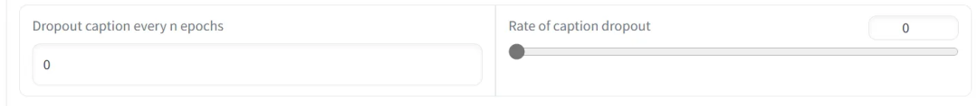 在训练中,也可以随机将一些训练集的标记(Caption)剔除。在 Drop out caption every n epochs 中,可以指定每隔多少 epoch 就剔除一些标记;在 Rate of caption dropout 中,可以指定剔除几成的标记。