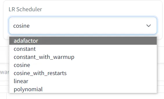 - cosine_with_restarts:余弦退火重启。在 consine 的基础上每过几个周期将进行一次重启,该值在选择后可以设定。