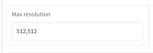 Training parameters 下的 Max Resolution 用于指定当前输入训练集图片的分辨率,请与文件夹内的保持一致。如果尺寸不一会被裁切。