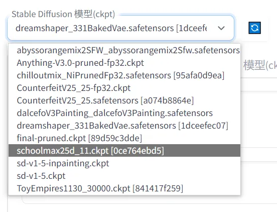 1、选择需要使用的模型(底模),这是对生成结果影响最大的因素,主要体现在画面风格上。